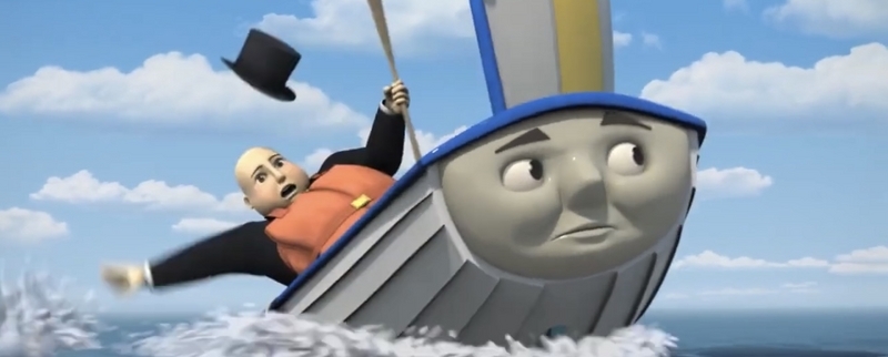 場面転換の後、トップハム・ハット卿はカモメを追い払おうとして間違って残りのオールも海に放り投げてしまい、孫たちの認識が正しいことが判明。彼はまさにピンチを引き寄せる人ですね(笑)